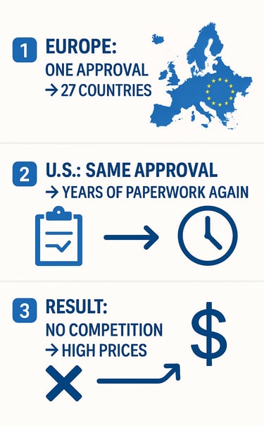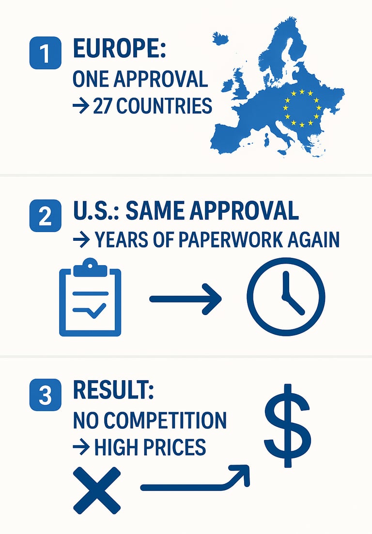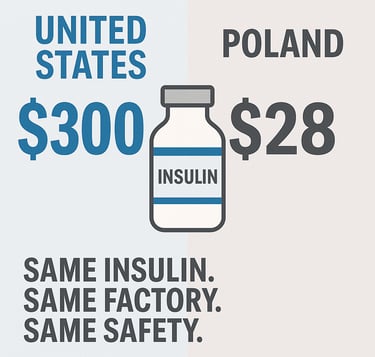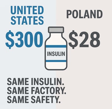 Americans pay over $300 for the same insulin that costs $28 in Europe, even though itโs made in the same factories and already approved by trusted regulators abroad.